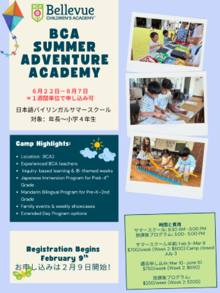 この夏、BCAでは 「Summer Adventure Academy」 を開催します。
